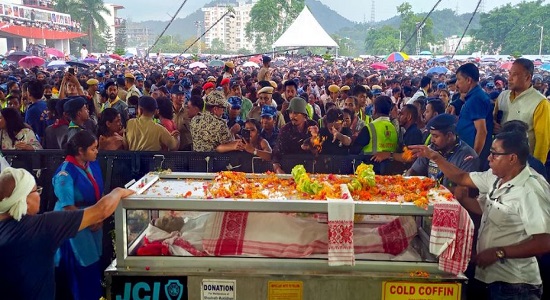 ਮੁੰਬਈ : ਅਸਾਮ ਆਪਣੇ ਮਸ਼ਹੂਰ ਗਾਇਕ ਜ਼ੁਬੀਨ ਗਰਗ ਨੂੰ ਦਿਲੋਂ ਸ਼ਰਧਾਂਜਲੀ ਭੇਟ ਕਰ ਰਿਹਾ ਹੈ। ਉਨ੍ਹਾਂ ਦੀਆਂ ਅੰਤਿਮ ਰਸਮਾਂ ਗੁਹਾਟੀ ਦੇ ਨੇੜੇ ਕਾਮਰੂਪ ਜ਼ਿਲ੍ਹੇ ਦੇ ਕਾਮਰਕੁਚੀ ਐਨ.ਸੀ ਪਿੰਡ ਵਿੱਚ ਕੀਤੀਆਂ ਜਾ ਰਹੀਆਂ ਹਨ। ਜ਼ੁਬੀਨ ਦੀ ਦੇਹ ਨੂੰ ਅਰਜੁਨ ਭੋਗੇਸ਼ਵਰ ਬਰੂਆ ਸਪੋਰਟਸ ਕੰਪਲੈਕਸ ਤੋਂ ਅੰਤਿਮ ਯਾਤਰਾ ਲਈ ਕੱਢਿਆ ਗਿਆ, ਜਿੱਥੇ ਜਨਤਾ ਨੂੰ ਸ਼ਰਧਾਂਜਲੀ ਦੇਣ ਦਾ ਮੌਕਾ ਮਿਲਿਆ। ਉਨ੍ਹਾਂ ਦੀ ਪਤਨੀ ਗਰਿਮਾ ਦੀ ਇੱਕ ਝਲਕ ਵੀ ਗਾਇਕ ਨੂੰ ਅੰਤਿਮ ਵਿਦਾਇਗੀ ਦਿੰਦੇ ਹੋਏ ਦਿਖਾਈ ਦਿੱਤੀ।