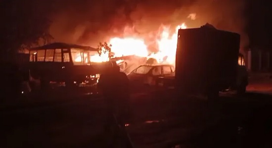 ਗਾਜ਼ੀਆਬਾਦ : ਉੱਤਰ ਪ੍ਰਦੇਸ਼ ਦੇ ਗਾਜ਼ੀਆਬਾਦ ਦੇ ਲੋਨੀ ਪੁਲਿਸ ਥਾਣਾ ਕੰਪਲੈਕਸ ਵਿੱਚ ਬੀਤੇ ਦੇਰ ਰਾਤ ਨੂੰ ਉਸ ਸਮੇਂ ਹਫੜਾ-ਦਫੜੀ ਮੱਚ ਗਈ ਜਦੋਂ ਜ਼ਬਤ ਕੀਤੇ ਗਏ ਵਾਹਨਾਂ ਵਿੱਚ ਅਚਾਨਕ ਅੱਗ ਲੱਗ ਗਈ। ਦੇਖਦੇ ਹੀ ਦੇਖਦੇ ਅੱਗ ਨੇ ਭਿਆਨਕ ਰੂਪ ਧਾਰਨ ਕਰ ਲਿਆ ਅਤੇ ਲਗਭਗ ਦੋ ਦਰਜਨ ਵਾਹਨ ਅੱਗ ਲਪੇਟ ਵਿੱਚ ਆ ਗਏ। ਅੱਗ ਦੀਆਂ ਲਪਟਾਂ ਦੂਰ ਤੱਕ ਦਿਖਾਈ ਦੇ ਰਹੀਆਂ ਸਨ, ਜਿਸ ਨਾਲ ਆਸ-ਪਾਸ ਦੇ ਲੋਕਾਂ ਵਿੱਚ ਦਹਿਸ਼ਤ ਫੈਲ ਗਈ।