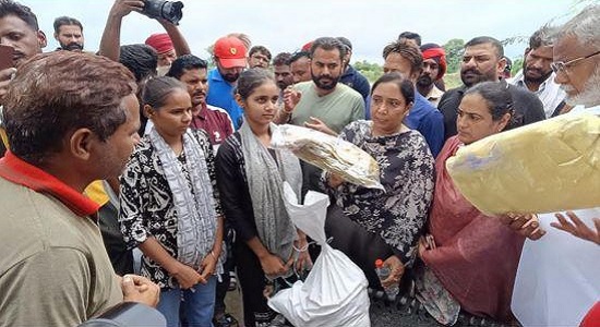 ਫਾਜ਼ਿਲਕਾ : ਕੈਬਨਿਟ ਮੰਤਰੀ ਡਾ. ਬਲਜੀਤ ਕੌਰ ਨੇ ਅੱਜ ਫਾਜ਼ਿਲਕਾ ਜ਼ਿਲੇ ਦੇ ਦੌਰੇ ਦੌਰਾਨ ਪਿੰਡ ਨੂਰ ਸ਼ਾਹ ਨੇੜੇ ਚੰਦ ਭਾਨ ਡਰੇਨ ਦੇ ਕੋਲ ਰਹਿ ਰਹੇ ਹੜ ਪ੍ਰਭਾਵਿਤ ਲੋਕਾਂ ਨੂੰ ਮਿਲ ਕੇ ਆਪਣੇ ਹੱਥੀ ਰਾਹਤ ਸਮਗਰੀ ਉਨ੍ਹਾਂ ਨੂੰ ਵੰਡੀ । ਇਸ ਮੌਕੇ ਫਾਜ਼ਿਲਕਾ ਦੇ ਵਿਧਾਇਕ ਨਰਿੰਦਰਪਾਲ ਸਿੰਘ ਸਵਨਾ ਅਤੇ ਅਬੋਹਰ ਦੇ ਸਾਬਕਾ ਵਿਧਾਇਕ ਅਰੁਣ ਨਾਰੰਗ ਵੀ ਉਨ੍ਹਾਂ ਦੇ ਨਾਲ ਹਾਜ਼ਰ ਸਨ ।