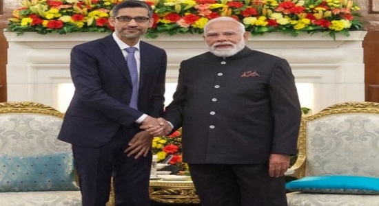 ਗੂਗਲ ਦੇ ਸੀ.ਈ.ਓ. ਸੁੰਦਰ ਪਿਚਾਈ ਨੇ ਪ੍ਰਧਾਨ ਮੰਤਰੀ ਨਰਿੰਦਰ ਮੋਦੀ ਨਾਲ ਕੀਤੀ ਮੁਲਾਕਾਤ