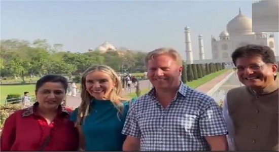 ਆਗਰਾ: ਕੇਂਦਰੀ ਵਣਜ ਮੰਤਰੀ ਪਿਊਸ਼ ਗੋਇਲ ਅਤੇ ਨਿਊਜ਼ੀਲੈਂਡ ਦੇ ਵਪਾਰ ਮੰਤਰੀ ਟੌਡ ਮੈਕਲੇ ਨੇ ਅੱਜ ਸਵੇਰੇ ਆਪਣੀਆਂ ਪਤਨੀਆਂ ਸਮੇਤ ਤਾਜ ਮਹਿਲ ਦਾ ਦੀਦਾਰ ਕੀਤਾ। ਦੋਵਾਂ ਮੰਤਰੀਆਂ ਨੇ ਸਮਾਰਕ ‘ਤੇ ਲਗਭਗ ਦੋ ਘੰਟੇ ਬਿਤਾਏ ਅਤੇ ਆਪਣੇ ਗਾਈਡ ਨਿ ਤਿਨ ਸਿੰਘ ਤੋਂ ਇਸਦੇ ਇ ਤਿਹਾਸ ਬਾਰੇ ਜਾਣਕਾਰੀ ਇਕੱਠੀ ਕੀਤੀ। ਆਪਣੀ ਫੇਰੀ ਦੌਰਾਨ, ਉਨ੍ਹਾਂ ਨੇ ਫੋਟੋਆਂ ਵੀ ਖਿਚਵਾਈਆਂ।