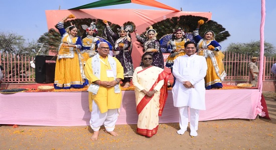 ਜਿਵੇਂ ਹੀ ਰਾਸ਼ਟਰਪਤੀ ਰਾਜਸਥਾਨ ਸਰਹੱਦ ‘ਤੇ ਪਹੁੰਚੇ, ਬ੍ਰਜ ਖੇਤਰ ਦੇ ਪ੍ਰਸਿੱਧ ਮਯੂਰ (ਮੋਰ) ਲੋਕ ਨਾਚਾਂ ਦੇ ਇੱਕ ਸਮੂਹ ਨੇ ਉਨ੍ਹਾਂ ਦਾ ਸ਼ਾਨਦਾਰ ਪ੍ਰਦਰਸ਼ਨ ਨਾਲ ਸਵਾਗਤ ਕੀਤਾ। ਰਾਸ਼ਟਰਪਤੀ ਪੈਦਲ ਪਰਿਕਰਮਾ ਕਰਨ ਲਈ ਰਾਜਸਥਾਨ ਖੇਤਰ ਵਿੱਚ ਦਾਖਲ ਹੋਏ ਅਤੇ ਲੋਕ ਕਲਾਕਾਰਾਂ ਦੇ ਰੂਹਾਨੀ ਪ੍ਰਦਰਸ਼ਨ ਤੋਂ ਪ੍ਰਤੱਖ ਤੌਰ ‘ਤੇ ਖੁਸ਼ ਦਿਖਾਈ ਦਿੱਤੇ।